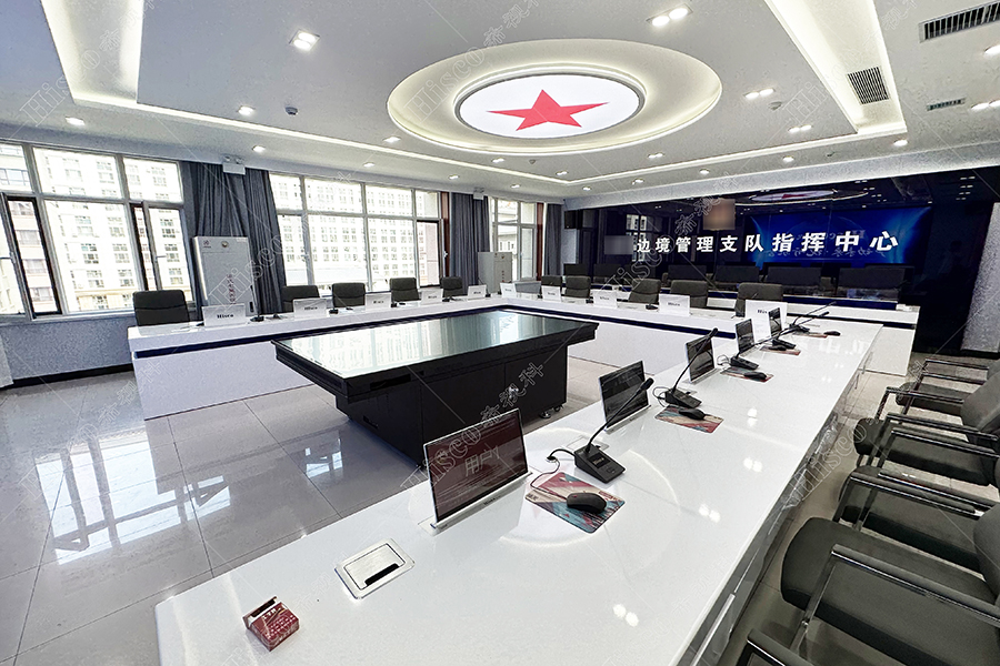 某边境管理支队指挥中心引进了希视科(Hishico)品牌的分布式、无纸化、数字会讨和专业扩声系统,以建设高效智能的会议室