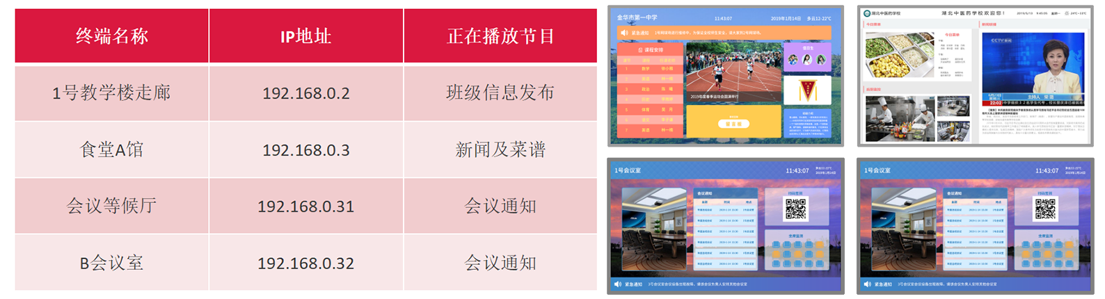 通过设备状态监控远程实时监控,终端播放器的网络连接状态、节目名称、分辨率、动态播放画面等,在节目发布后便于人员管理,省去现场查看的过程。